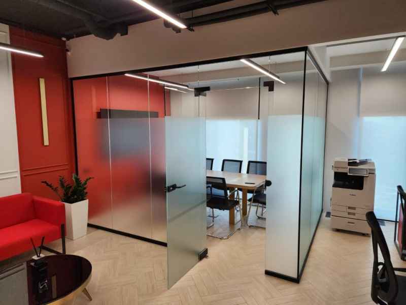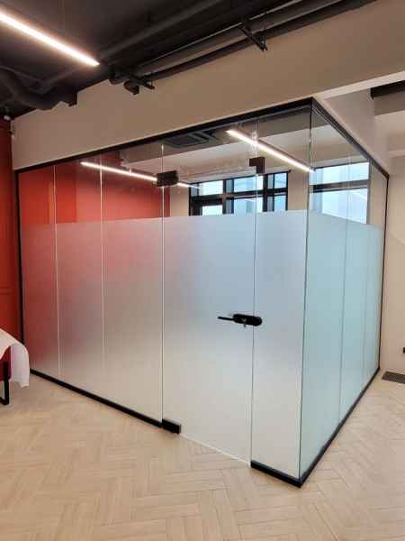 Выполнили работы по строительству стеклянной переговорной в топовом офисе.