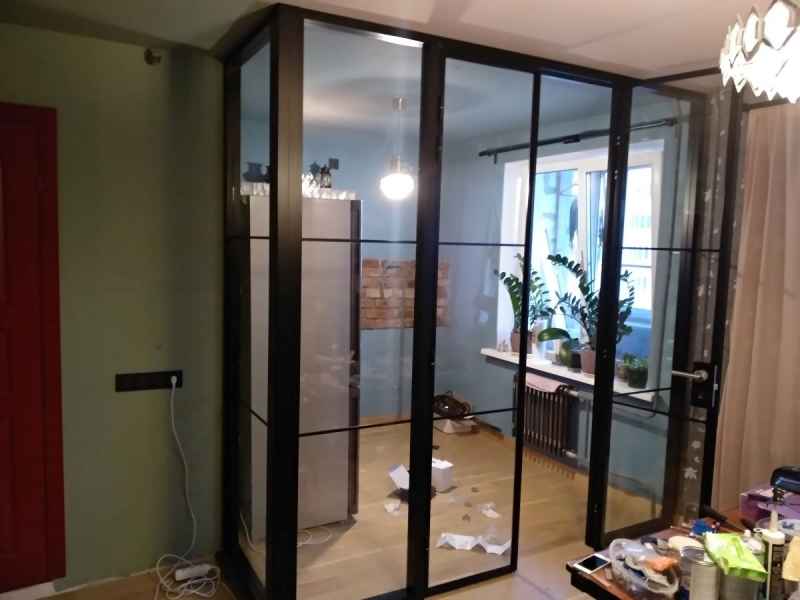 Задача: Изготовление перегородки в стиле LOFT для организации зонирования кухонной зоны