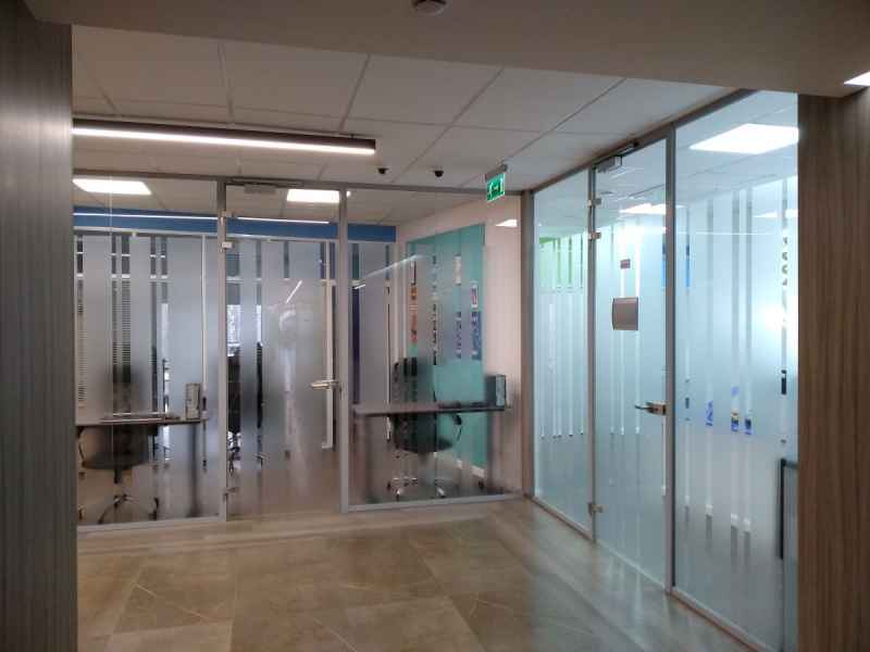 На данном объекте было установлено более 3500 м2 цельностеклянных перегородок, с гарантией на продукцию 1 год.